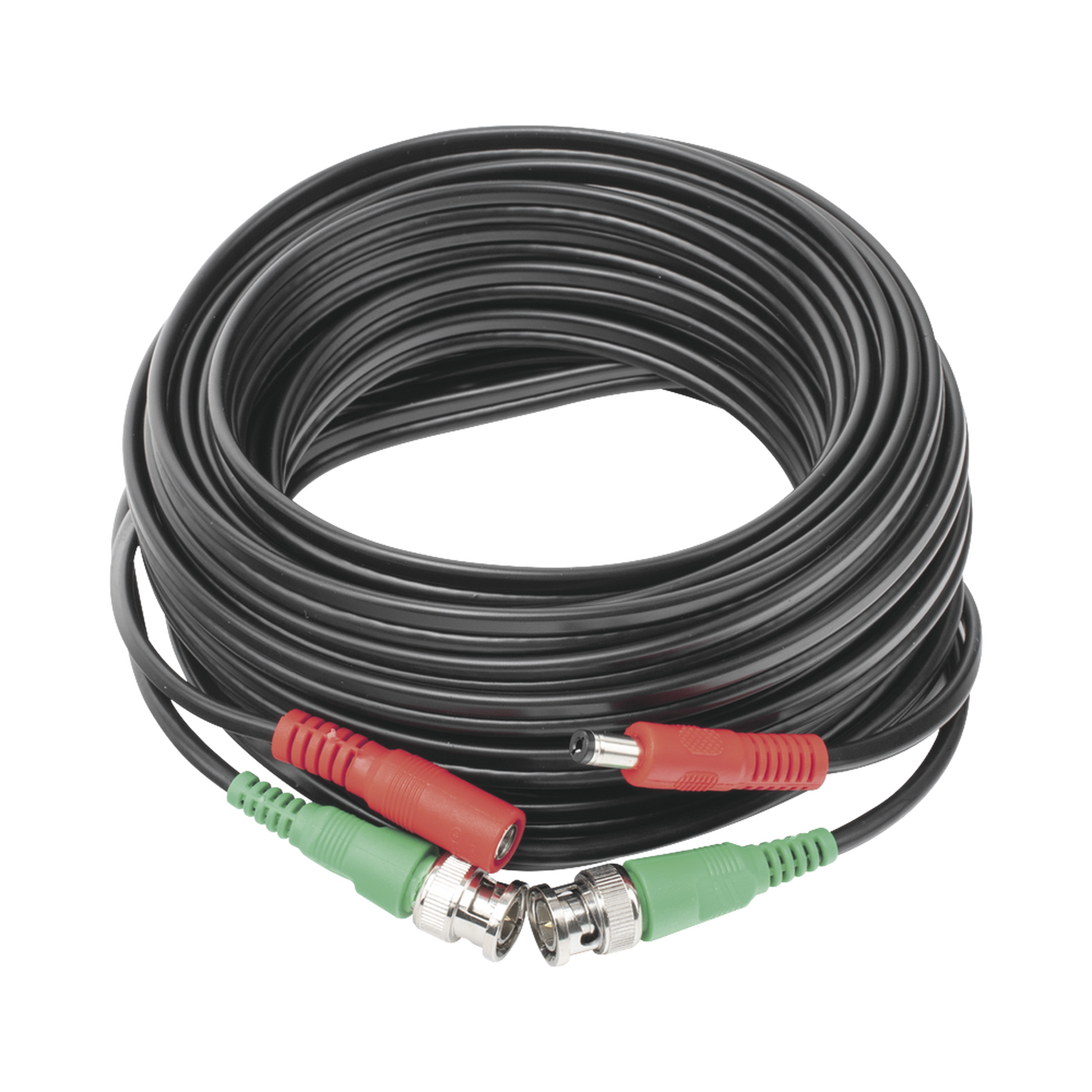 Cable Coaxial armado con conector BNC y Alimentación; longitud de 10m; Optimizado para 4K excelente calidad de transmisión; sin pérdida de señal. Clasificado para su uso en sistemas de circuito cerrado de televisión.